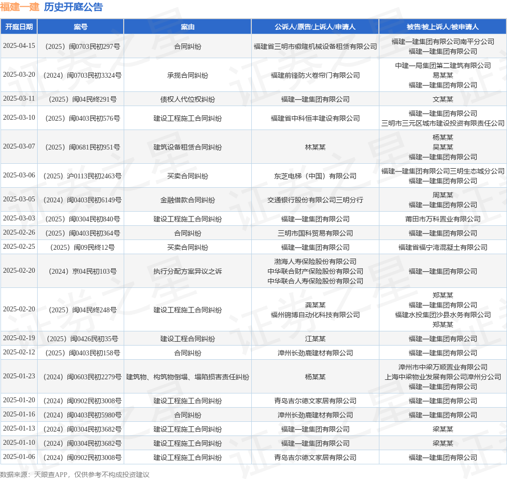 本站消息,根据天眼查APP显示,近日公布了一则福建一建集团有限公司作为被告/被上诉人的开庭公告,详细内容如下: